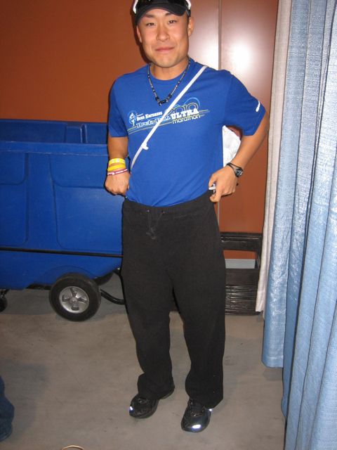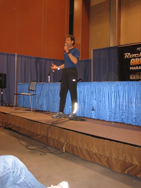 OK so yeah...maybe we were getting a bit stalkerish. But hey - it's Dean Karnazes! The year before I had organized a huge group to go see his documentary at the movie theater from when he ran 50 marathons in 50 days. I am sort of a fan OK? And I mean, LOOK AT THOSE LEGS! :p